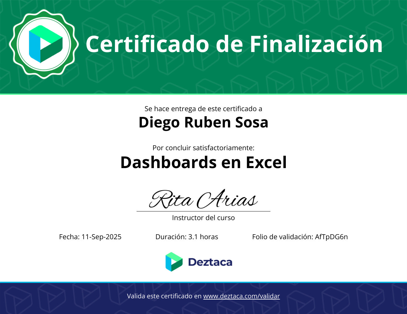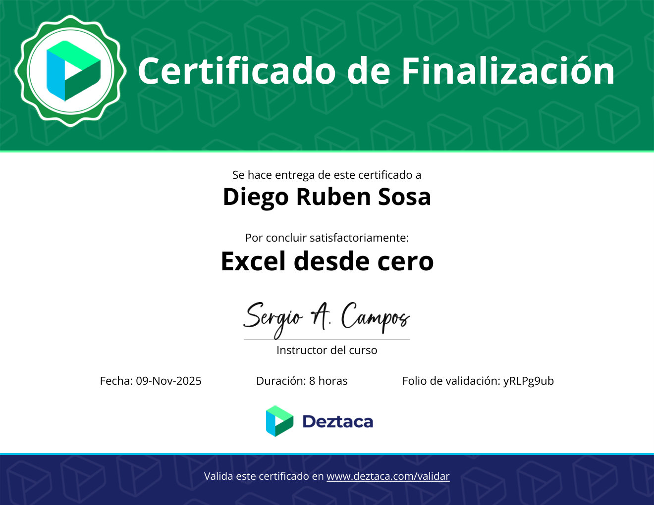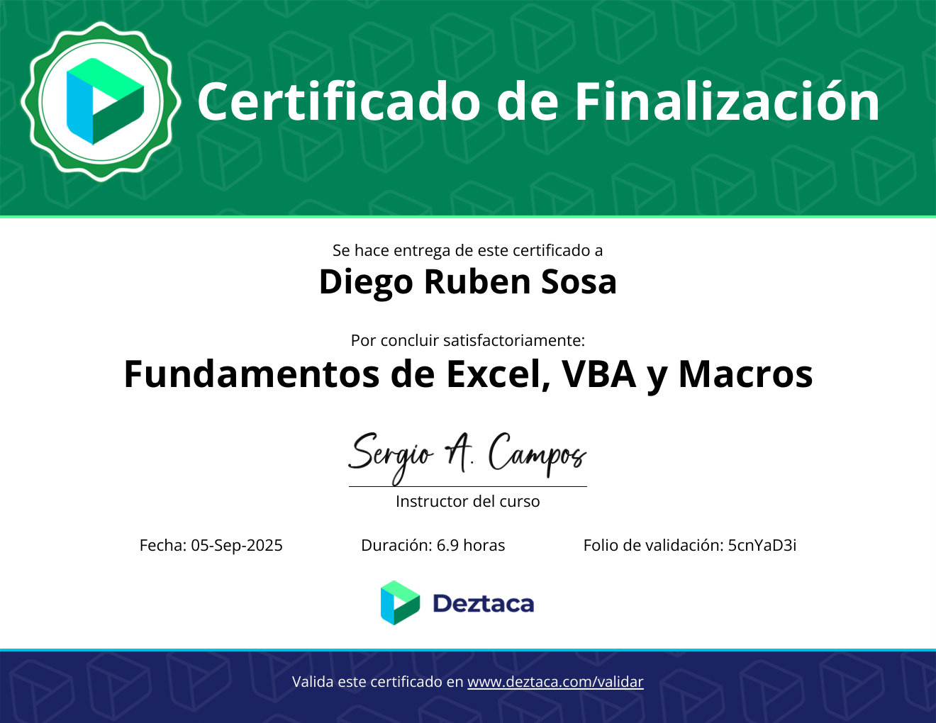 Mi nombre es Diego Sosa vivo en Buenos Aires, Argentina trabajo en una empresa de Logistica de una cadena de supermercados muy grande, desde hace mucho tiempo realizo reportes e informes pero ahora estoy en el area de planeamiento y quiero hacer reformas a los reportes, archivos en axcel y planillas que hay x que son muy pesadas y muy poco amigables para usar. Espero poder incorporar los conociemtos para mejorar la calidad de los datosy para mejorar la productividad y visibilidad de los datos.