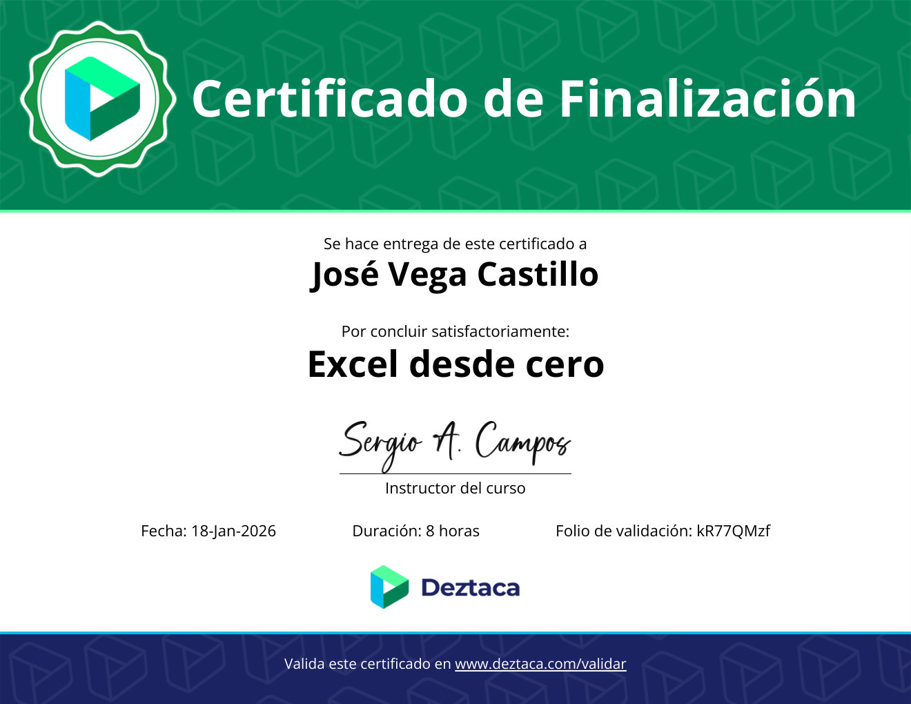 Hola Sergio, soy una persona de 70 años, apasionado con aprender Excel y Power Bi, lo que espero lograr con tu curso, obviamente iré a mi ritmo porque igual tengo algunos achaques que son propios de la edad, pero la voluntad y el entusiasmo por aprender están a tope.
