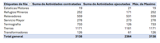 Tengo servicios contratados para varias disciplinas, en los contratos se indica un volumen a de actividades contratadas y en los reportes se indican las actividades ejecutadas, primeras dos columnas.