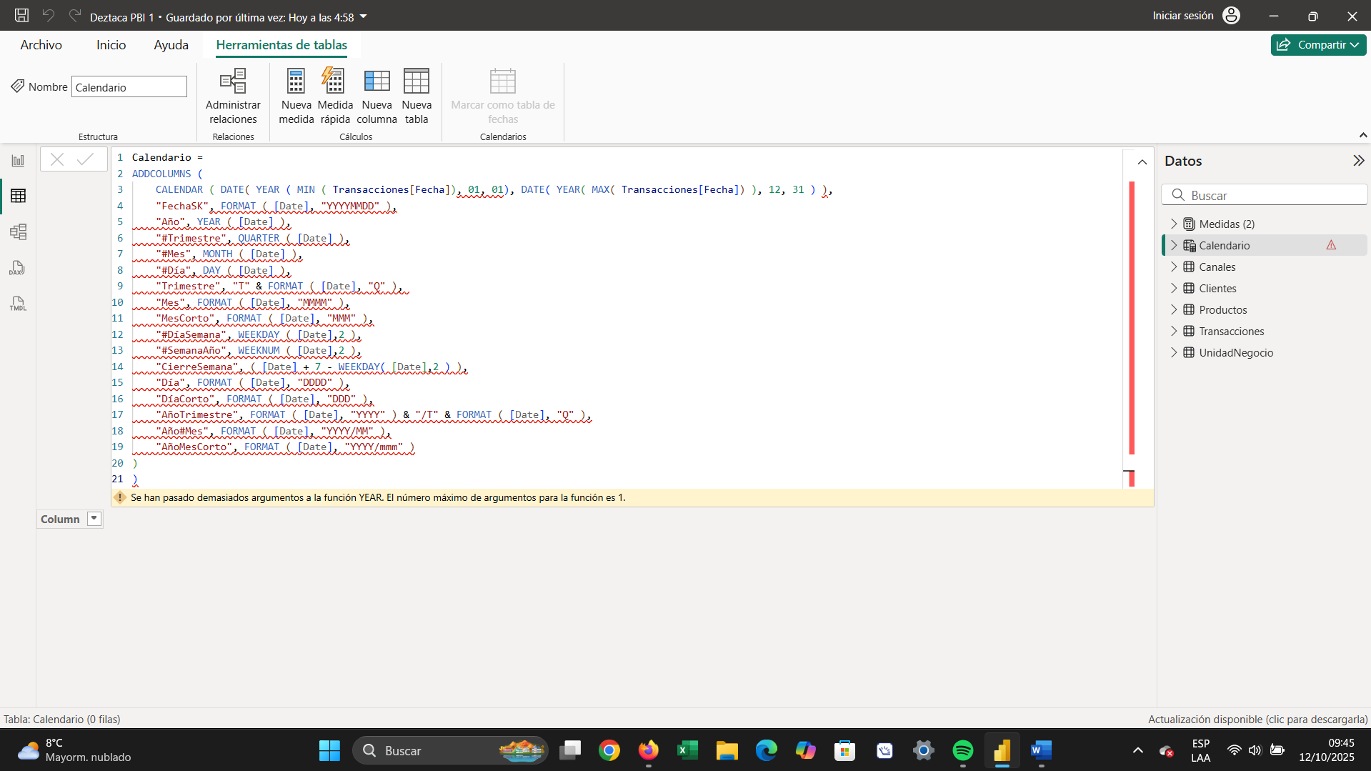 CALENDAR ( DATE(YEAR(MIN(Transacciones[Fecha])), 01, 01), DATE(YEAR(MAX(Transacciones[Fecha])), 12, 31) ).