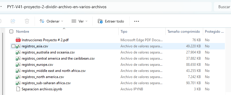 Proyecto 2 - Dividir archivo en varios archivos